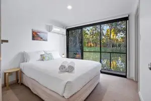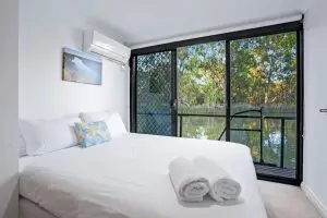 Five spacious queen-sized bedrooms ensure comfort for all, with flexible bedding configurations to suit couples, families, or friends. Two semi-ensuite bathrooms are conveniently accessible from the hallway, while a third powder room—with a washing machine and dryer—can be entered from the main bedroom or back deck.