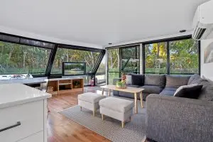 Enjoy year-round comfort with refrigerated air conditioning and heating throughout all bedrooms and living areas, so you stay cool even on the hottest summer days or warm during winter escapes. The large lounge, complete with a fold-out sofa, is perfect for group gatherings, while the Bluetooth Portable Sound System and Starlink high-speed internet keep you connected and entertained.